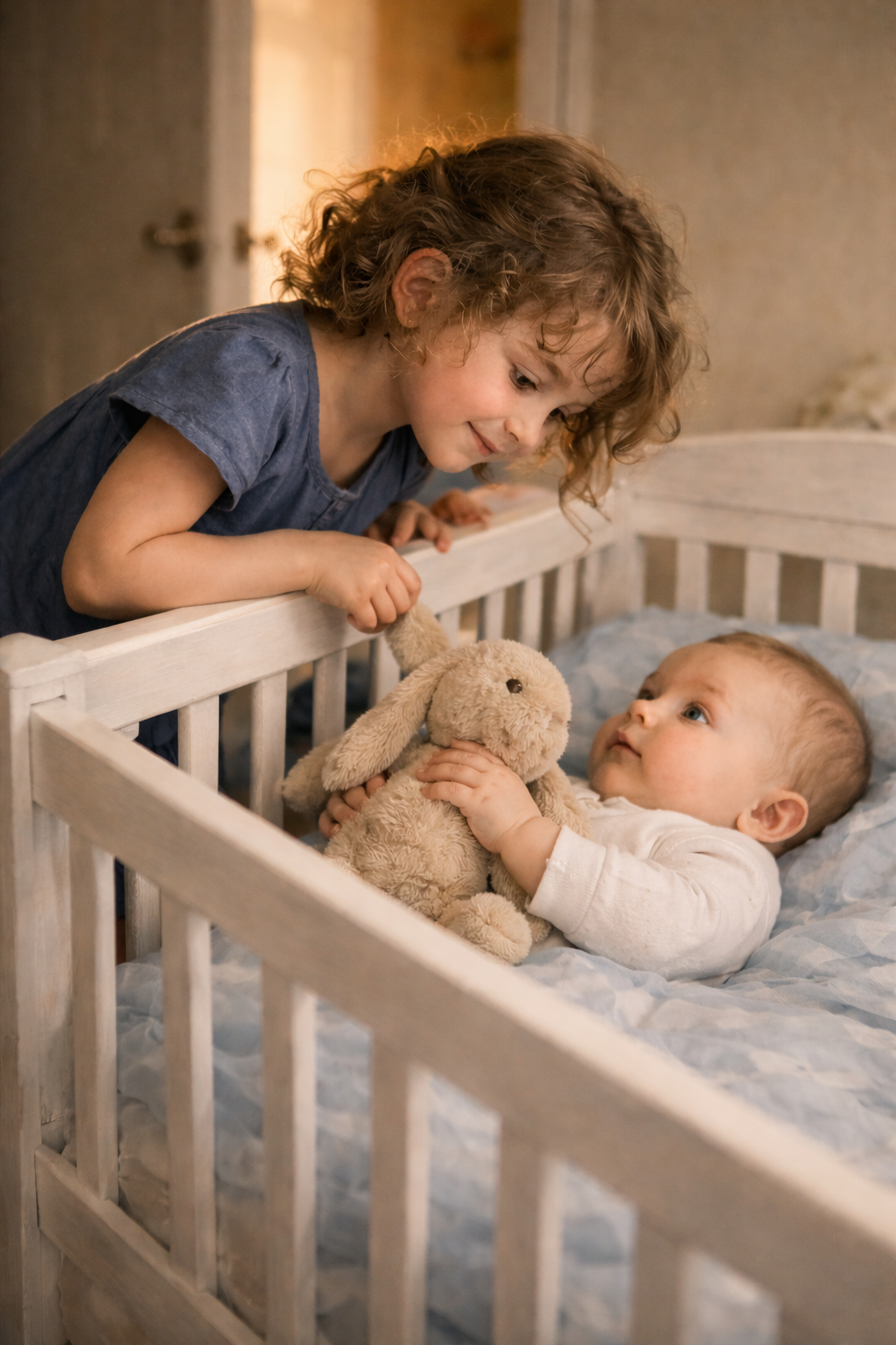 “Good morning, baby,” she announced, climbing onto a stool beside the crib.