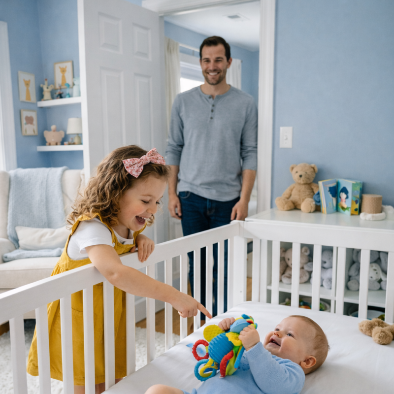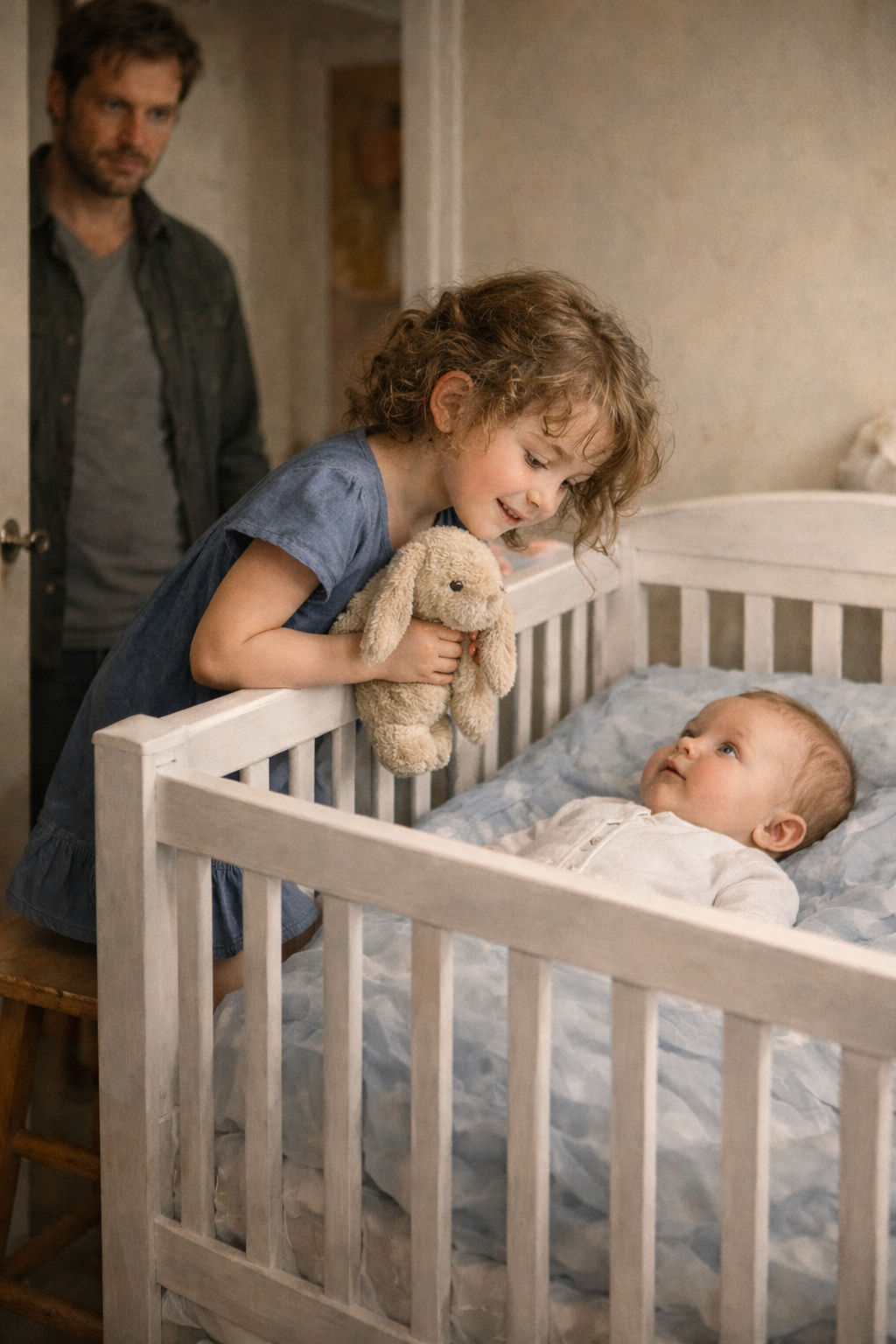 He glanced toward the nursery, where Maisie’s soft laughter drifted through the door.