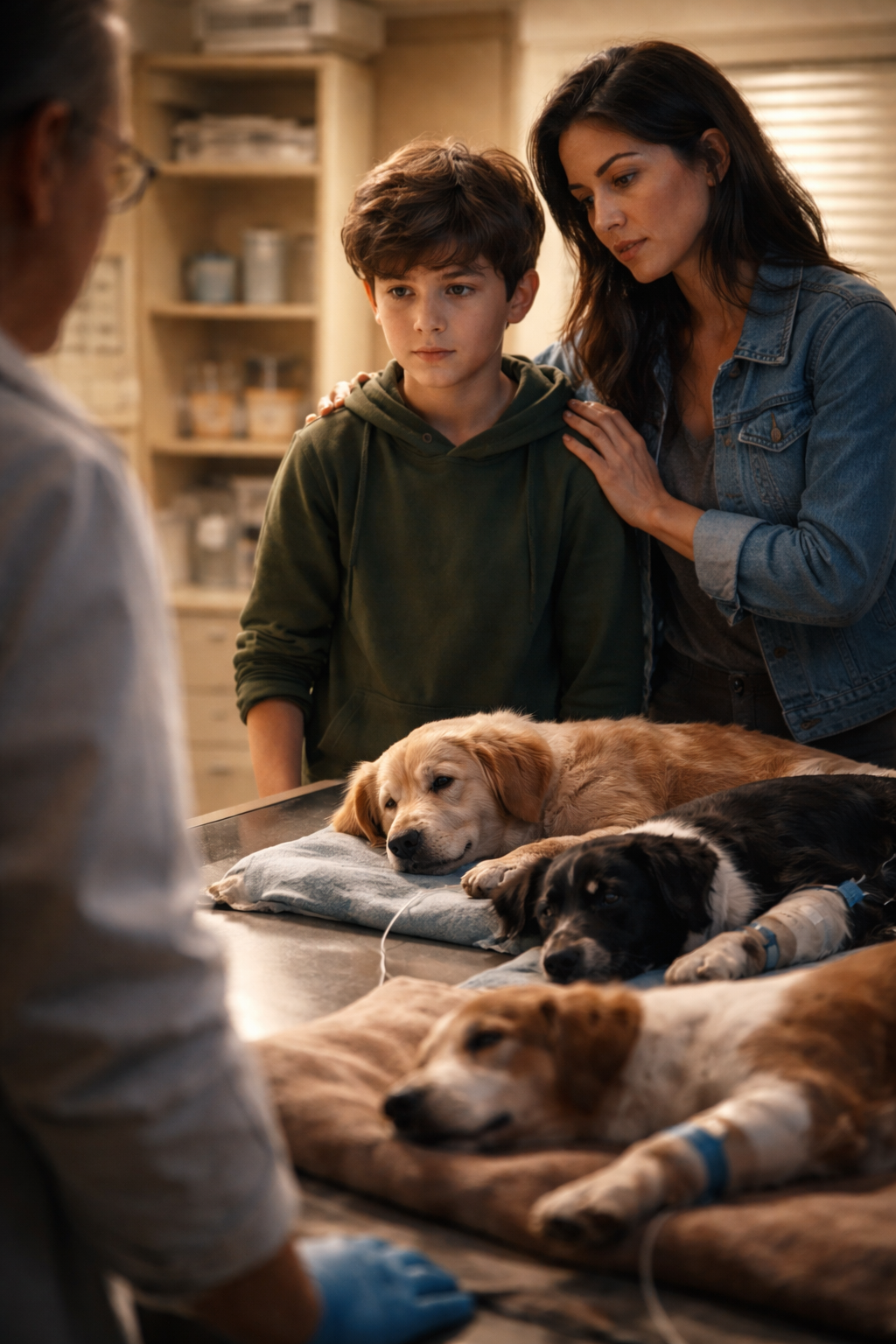Ethan stayed close to me as the vet examined them one by one.