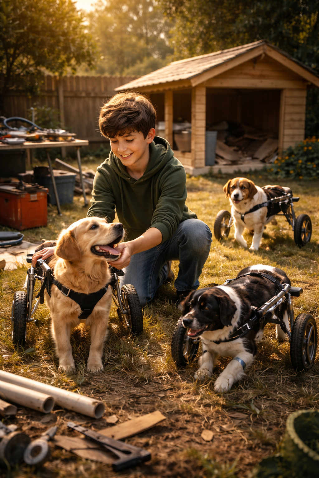 “We… we found them… they couldn’t walk… so I made them wheels… and we built them a house… and then someone broke it.”