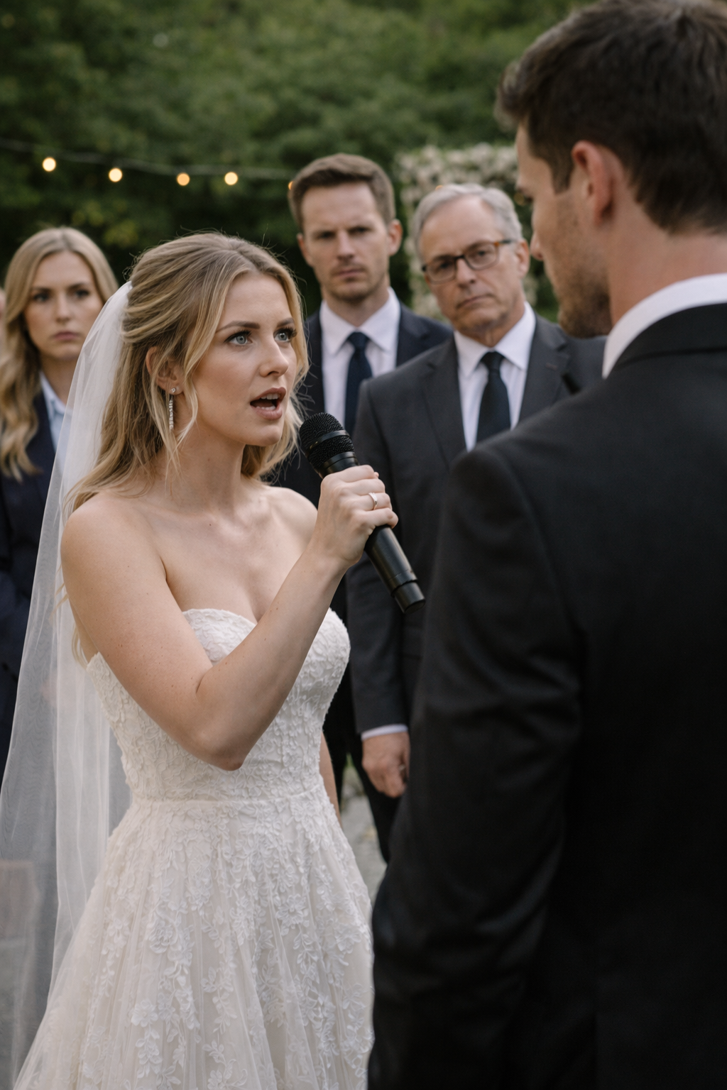I stepped away from the altar, walked toward the microphone beside the floral arch, and picked it up.
