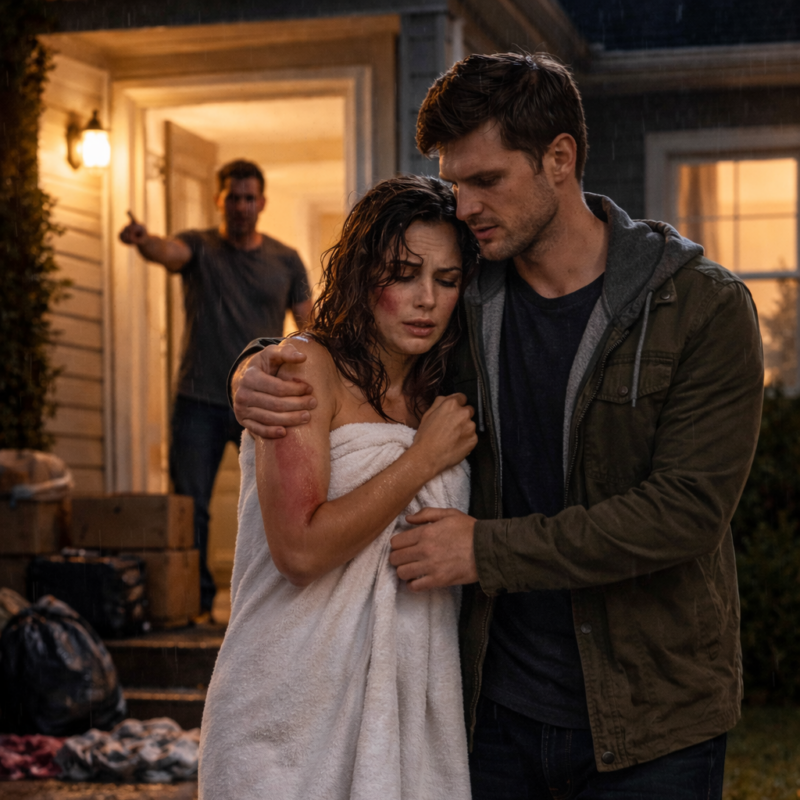 Ethan said nothing at first. He stepped closer, removed his jacket, and placed it gently over her shoulders, shielding her shaking body from the cold.
