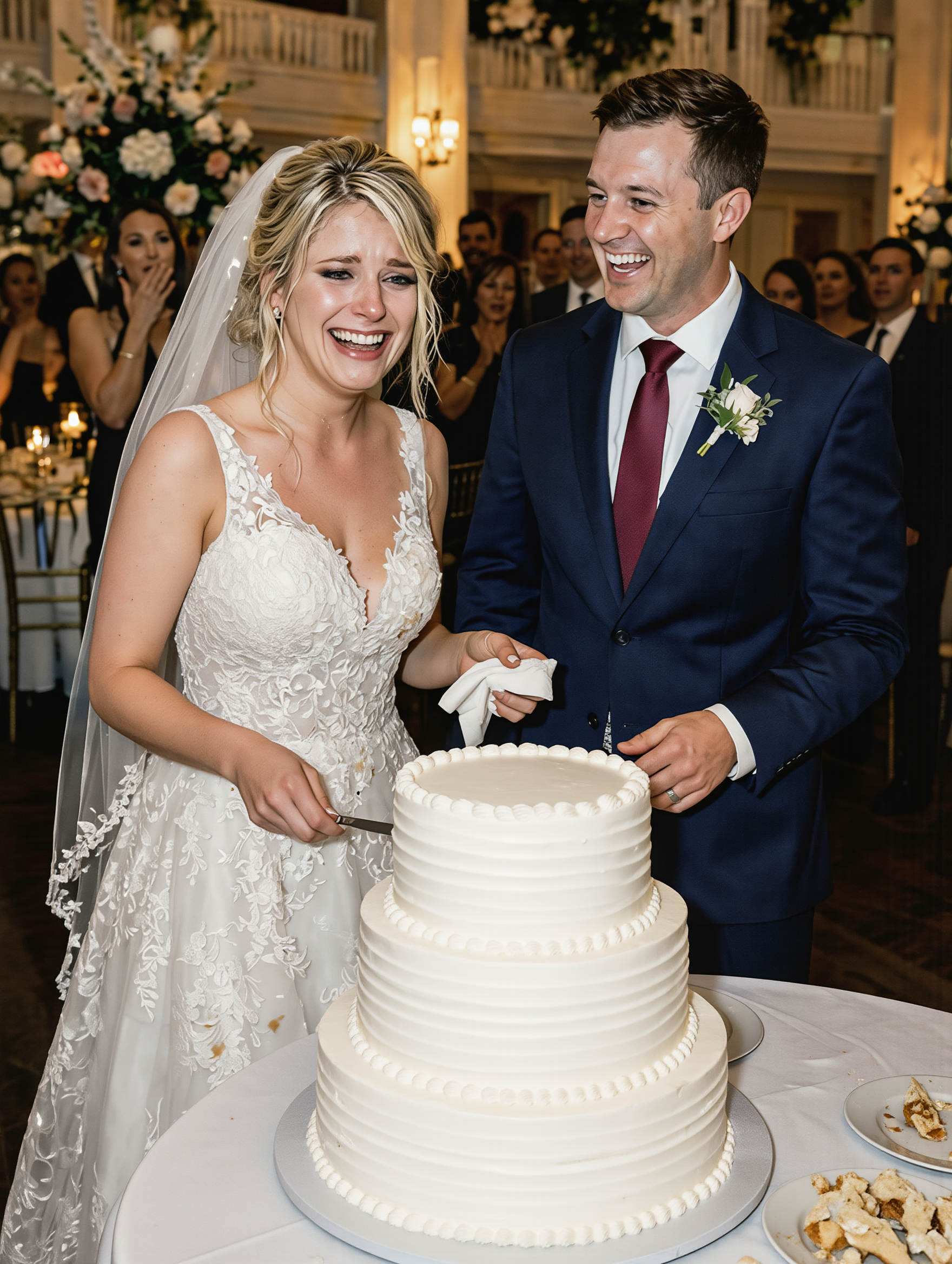 Buttercream frosting covered my face, my hair, and the bodice of my dress. My carefully applied makeup was completely destroyed. I couldn’t even see through the thick layer of cake and frosting.