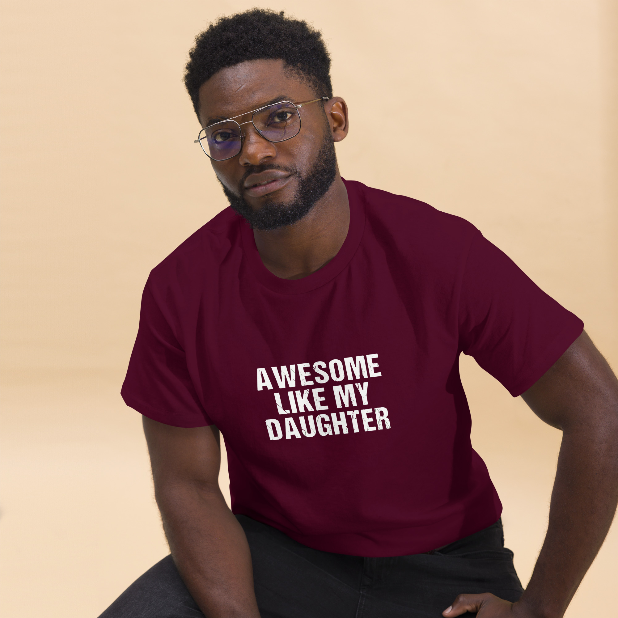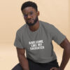 Place the end of the tape beside the collar at the top of the tee (Highest Point Shoulder). Pull the tape measure to the bottom of the shirt.