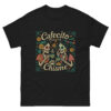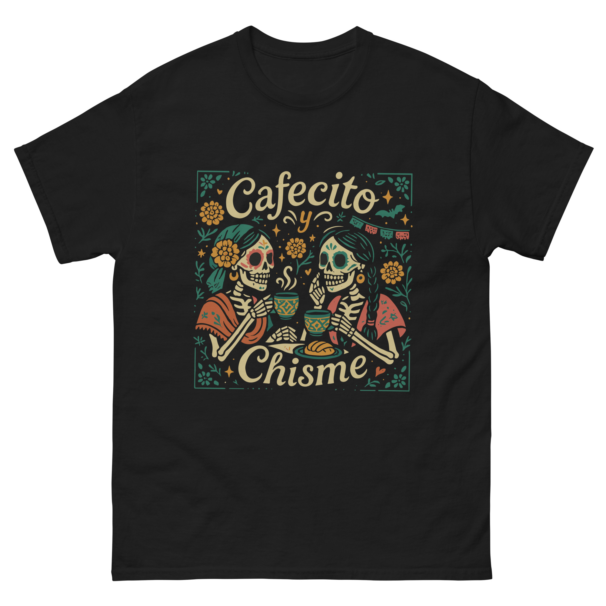 Place the end of the tape beside the collar at the top of the tee (Highest Point Shoulder). Pull the tape measure to the bottom of the shirt.