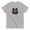 Place the end of the tape beside the collar at the top of the tee (Highest Point Shoulder). Pull the tape measure to the bottom of the shirt.