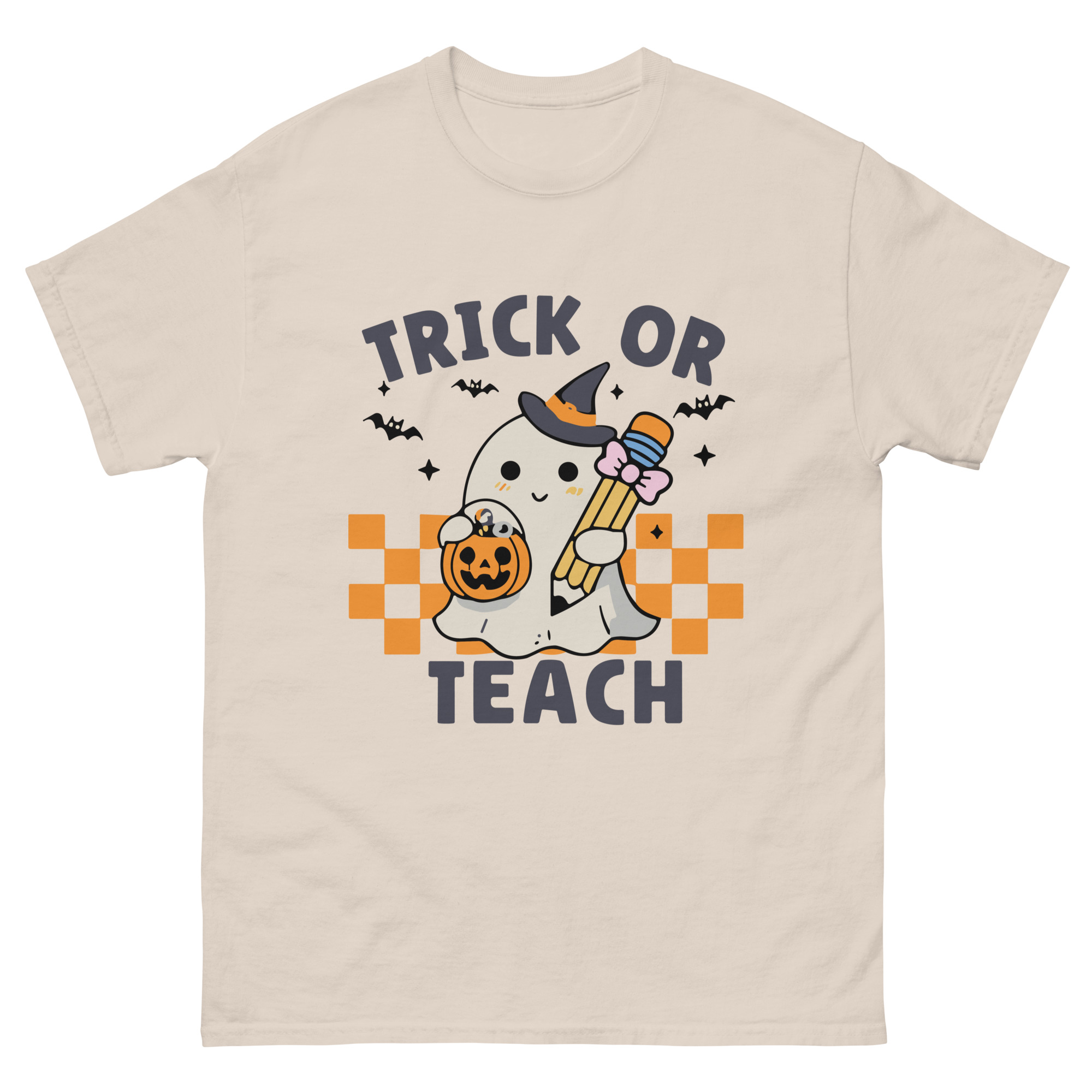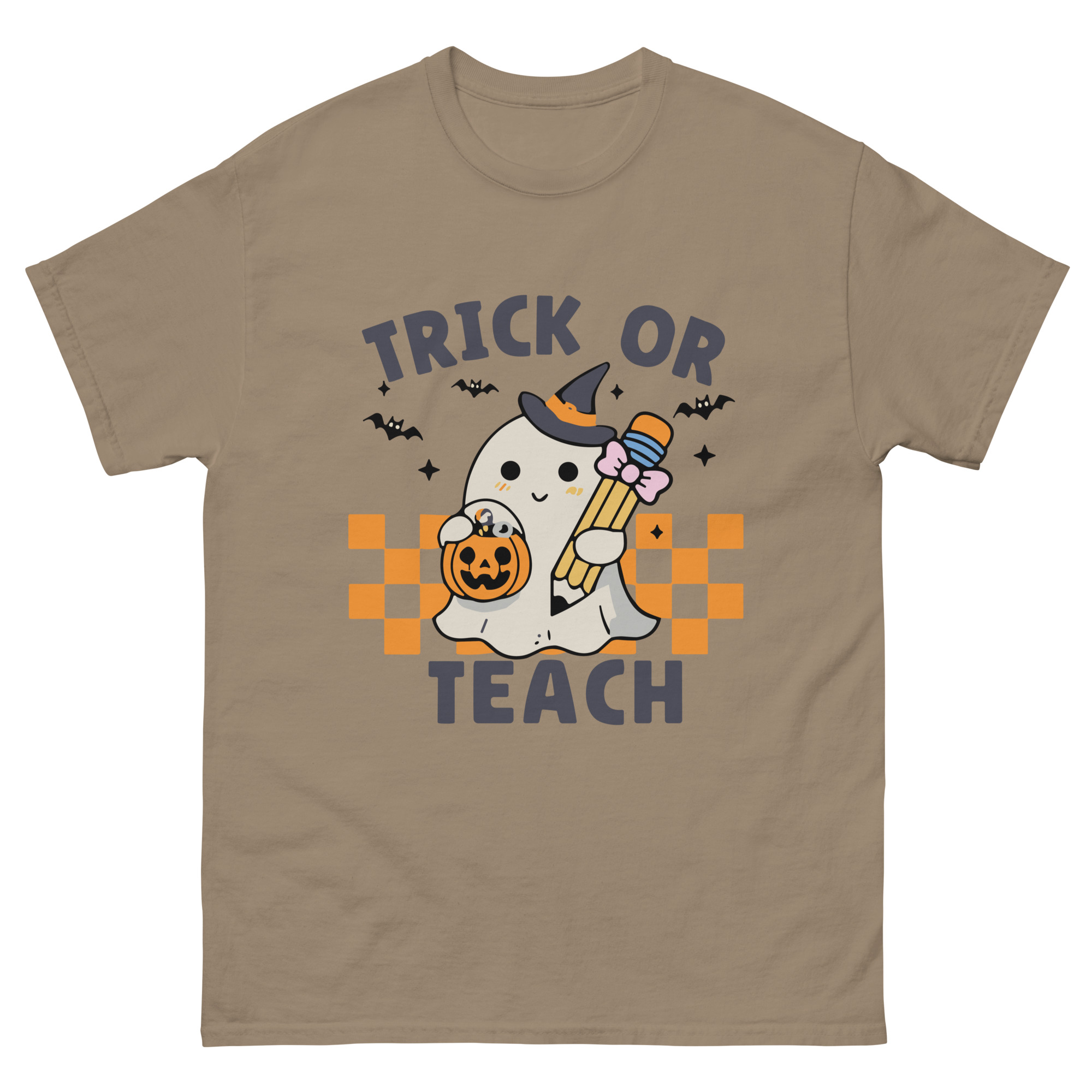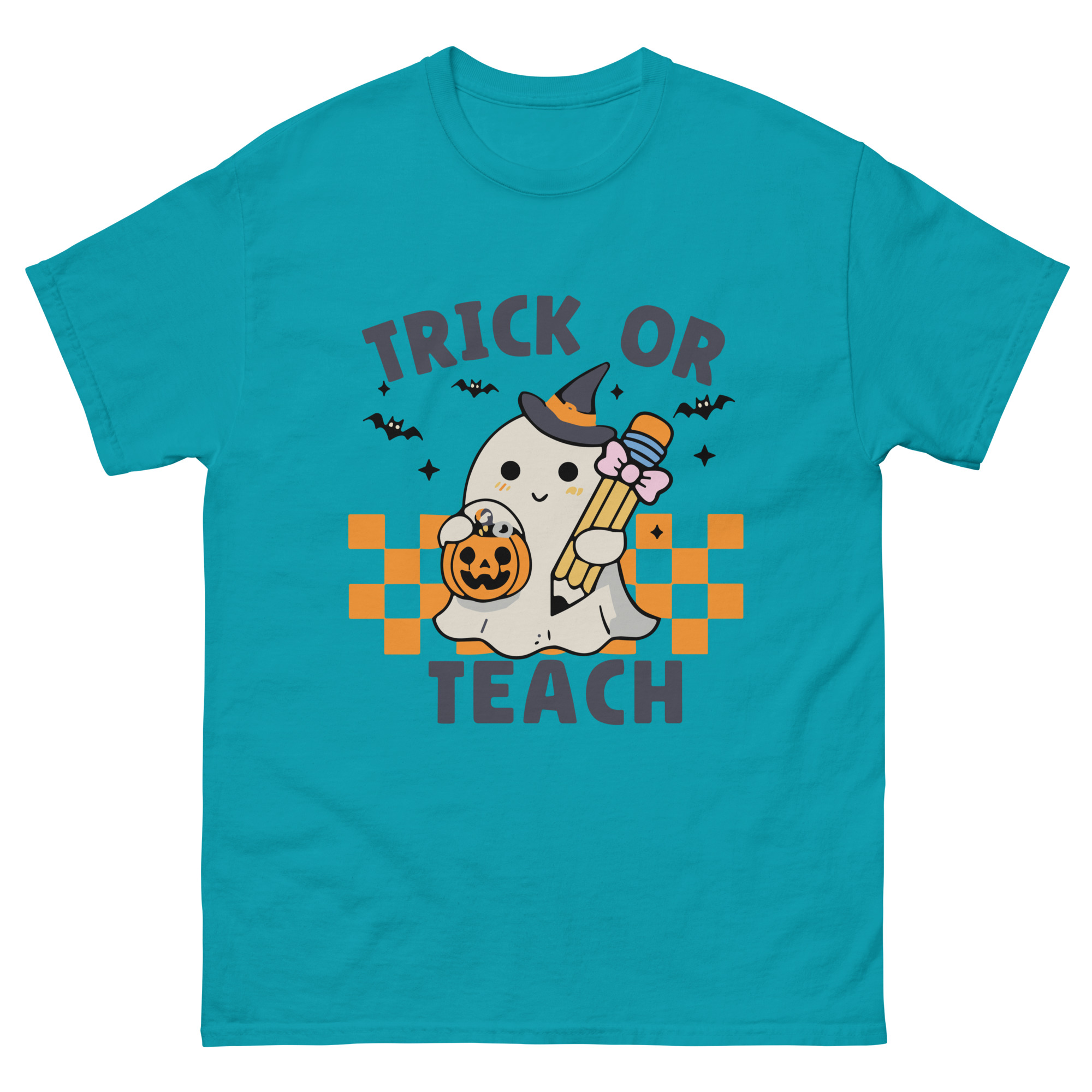 Place the end of the tape beside the collar at the top of the tee (Highest Point Shoulder). Pull the tape measure to the bottom of the shirt.
